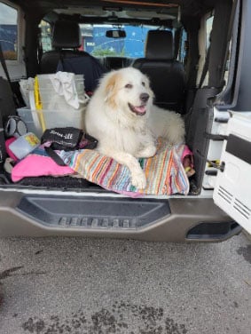Currently, ZURY is 7 months old and is very happy to help me pull grocery carts in stores. When ZURY is full grown she will be able to learn how to carry a backpack and pull the bicycle trailer.