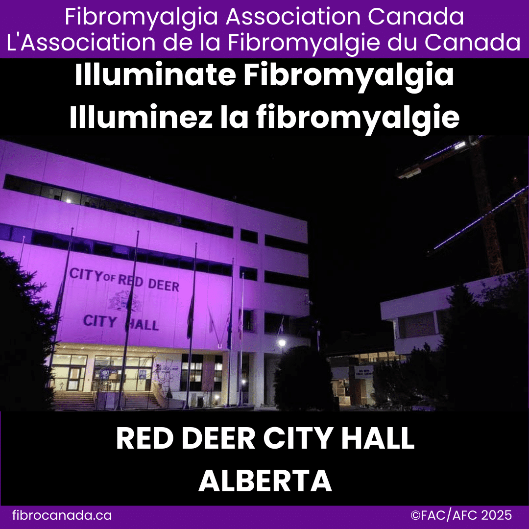 Fibromyalgia Association Canada (FAC) would like to express its most HEARTFELT THANK YOU to all of the municipalities who are lighting up their buildings and/or landmarks PURPLE to raise awareness for fibromyalgia.
