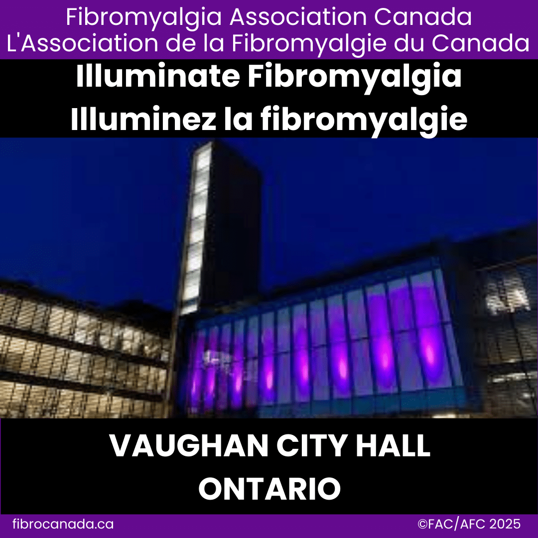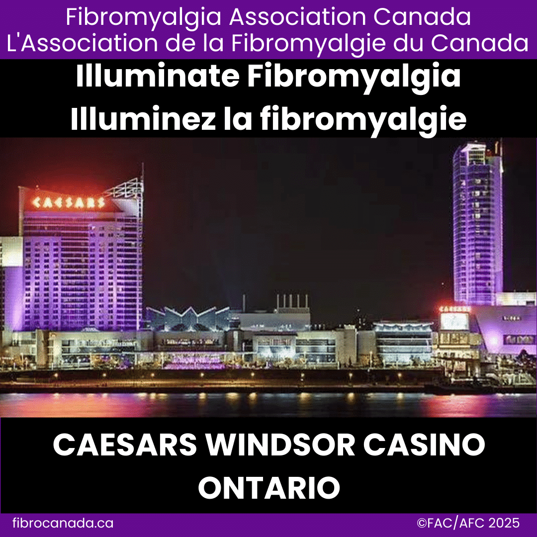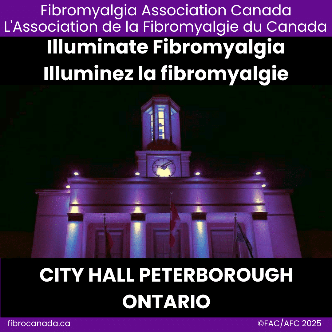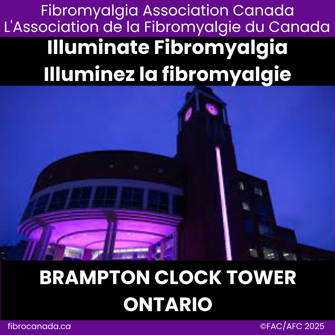 In honour of the 33rd Anniversary of the International Fibromyalgia Awareness Day, Fibromyalgia Association Canada (FAC) is pleased to announce that the following buildings and landmarks will light up PURPLE on or about May 12, 2025 in honour of Fibromyalgia Awareness Day for our Illumination 2025 Campaign.