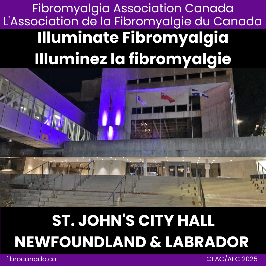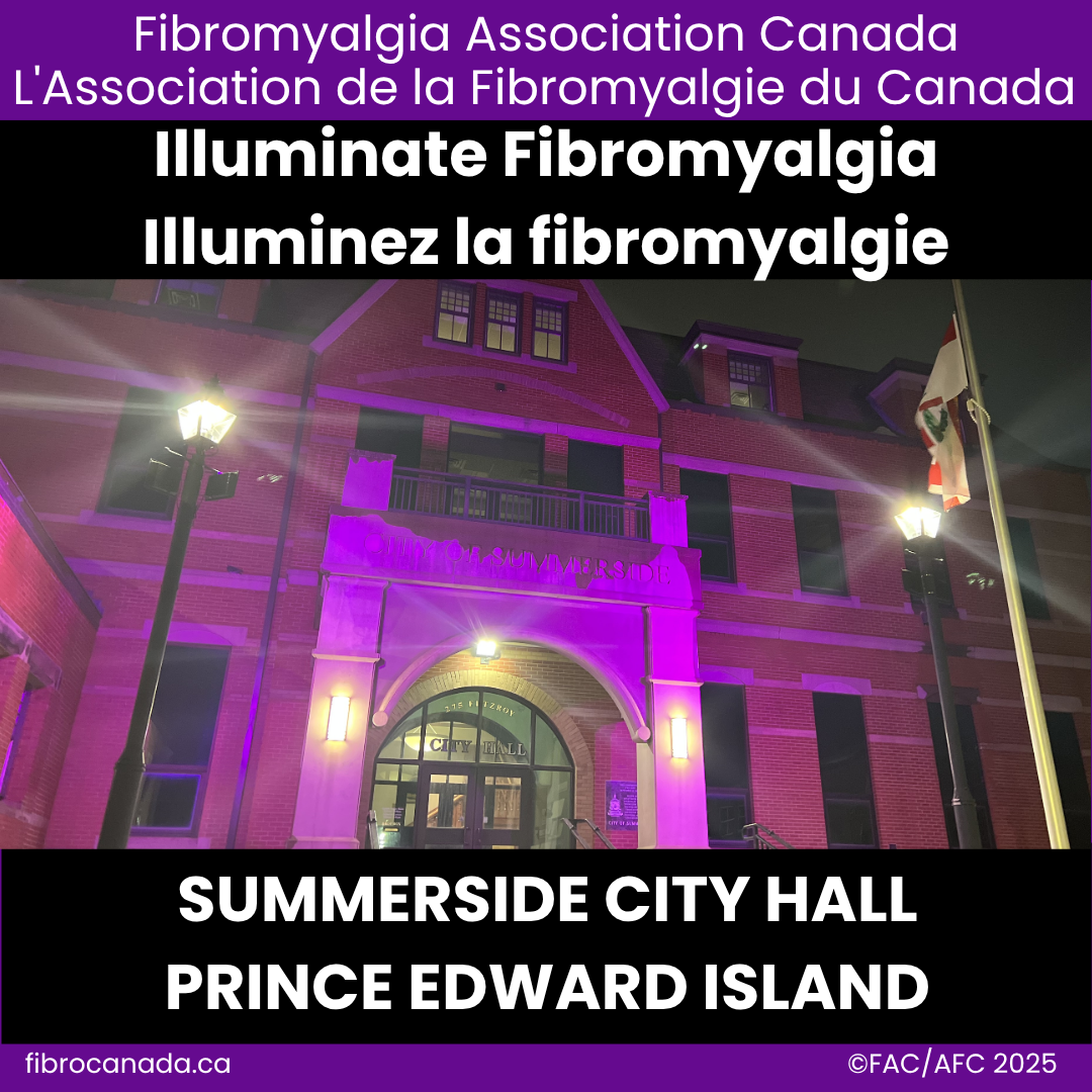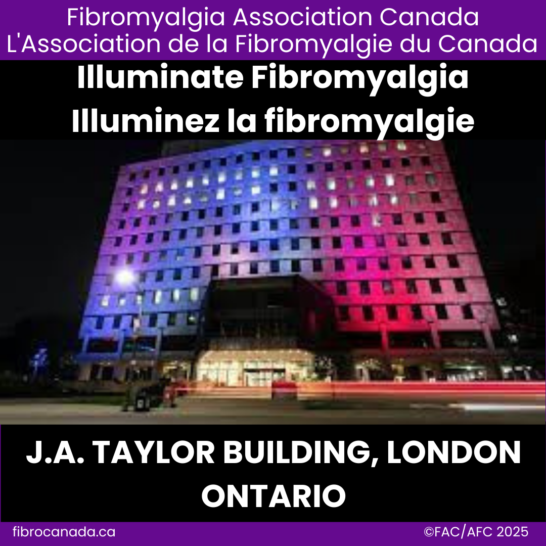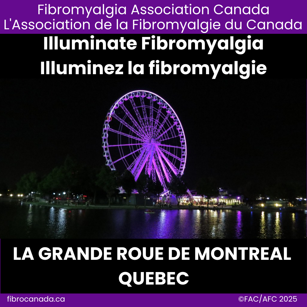 In honour of the 33rd Anniversary of the International Fibromyalgia Awareness Day, Fibromyalgia Association Canada (FAC) is pleased to announce that the following buildings and landmarks will light up PURPLE on or about May 12, 2025 in honour of Fibromyalgia Awareness Day for our Illumination 2025 Campaign.