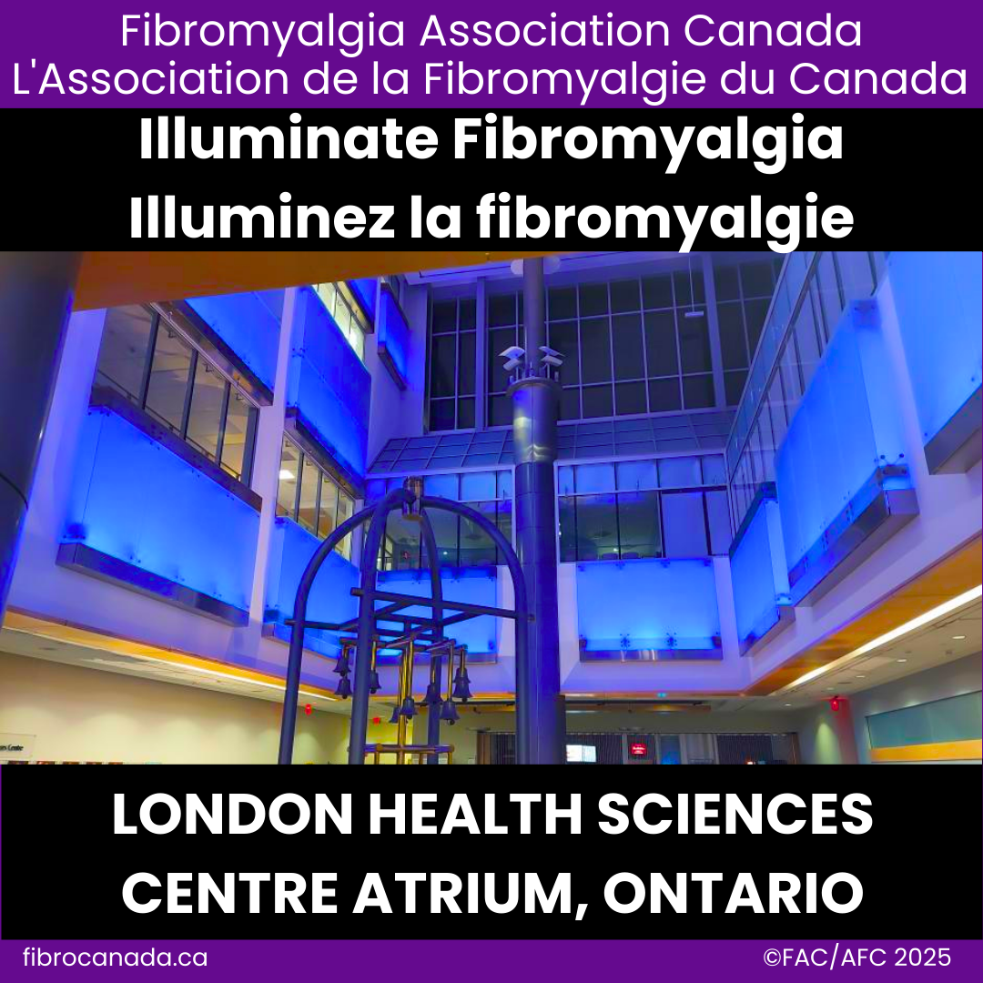 Help us illuminate fibromyalgia. If you would like to register your participation in this event and have your building(s) added to the list of locations that will be taking part in FAC's Illumination Campaign, please email admin@fibrocanada.ca. We look forward to sharing in this once in a lifetime opportunity with you!